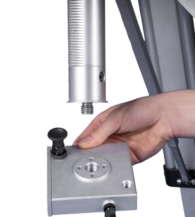 Depending on your measuring task, the basic tube with the support plate and the 5/8 inch connection can be connected to the tripod upright or head first (e.g. for manhole scanning). The additional prolongation tubes are connected to the previous tube each time. As a result, you get an almost arbitrarily extendable rod.