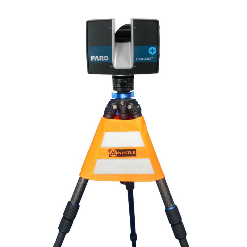 Using the tripod warning kilt, you optimize the visibility of your laser scanner on the tripod. Simply place the warning kilt around the tripod and close it with the hook and loop fastener.